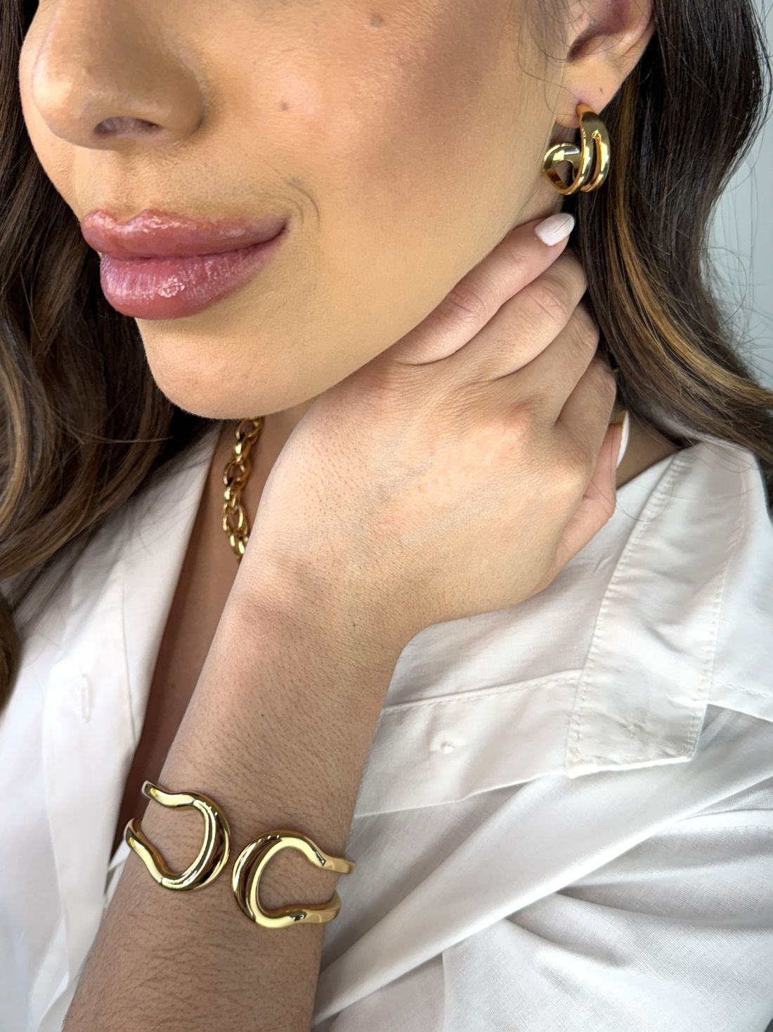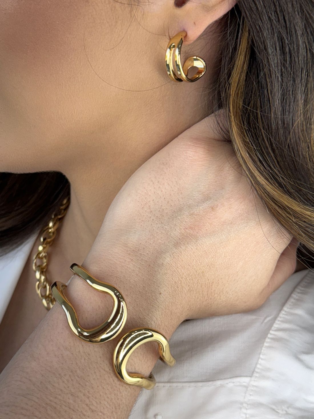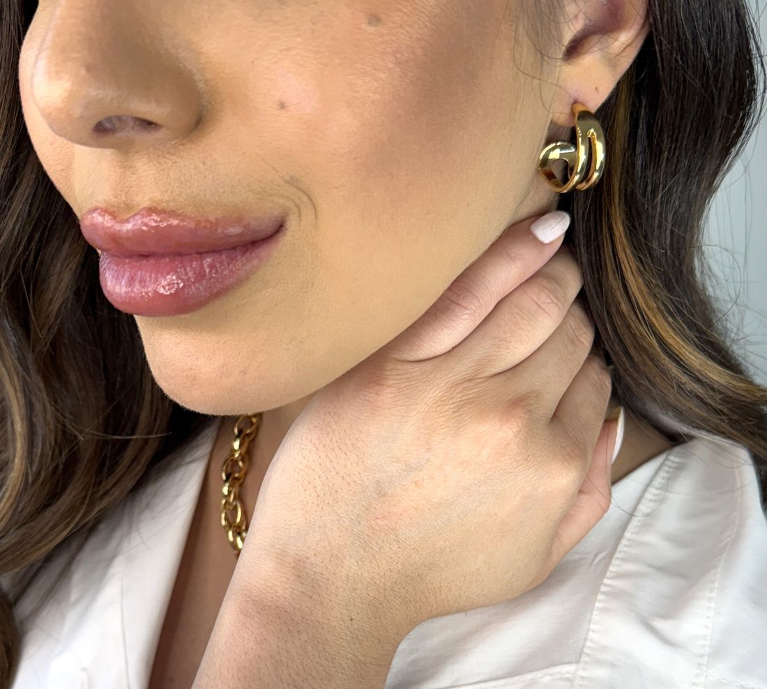 Brincos dourado de aro duplo, com desing moderno. Elegante e versátil, perfeita para quem busca uma peça elegante e minimalista.