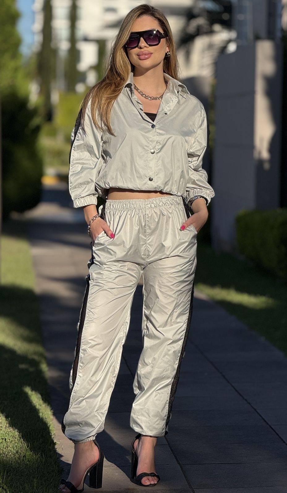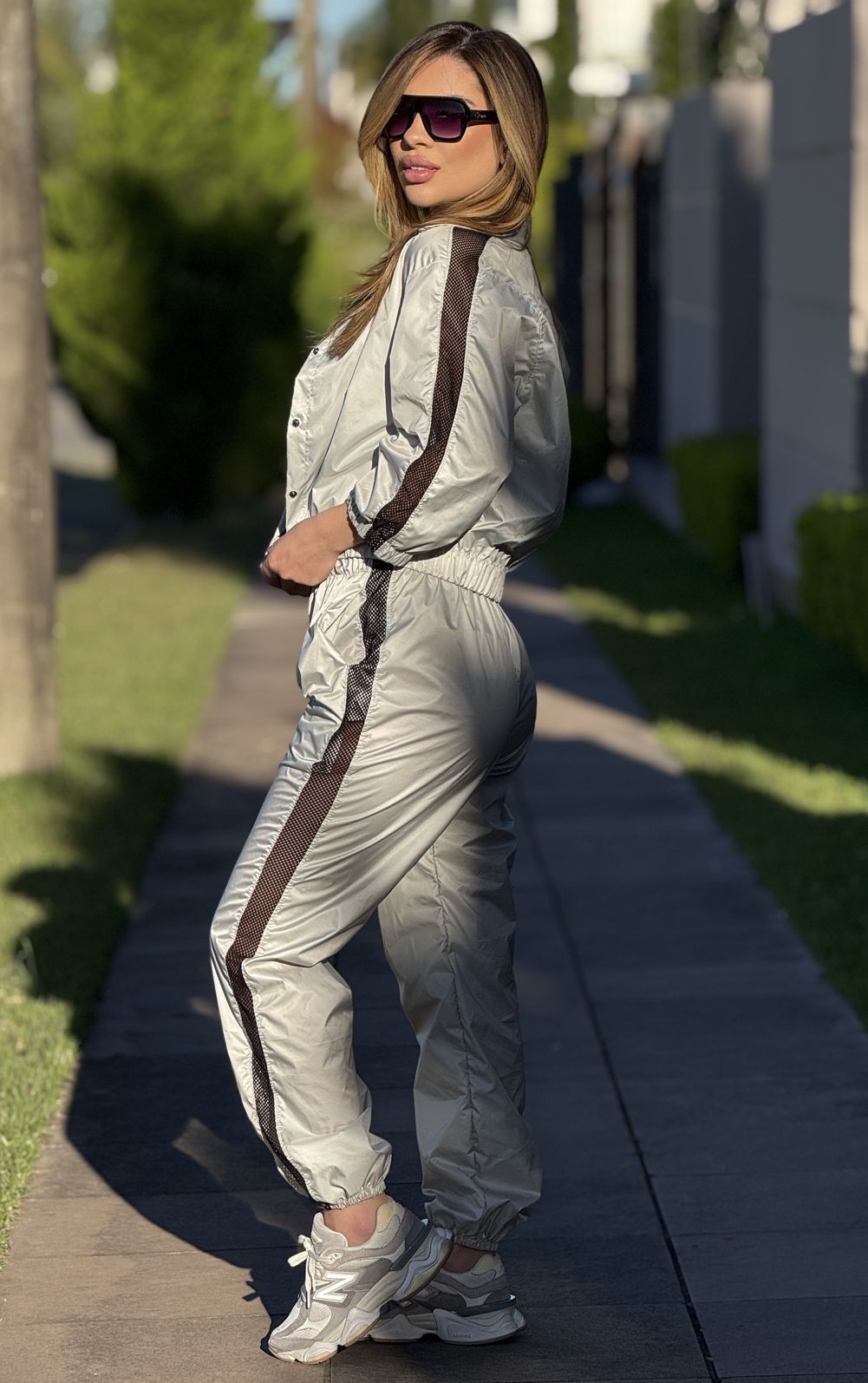 Calça jogger com cós e punhos em elástico rebatido, garantindo conforto e ajuste perfeito ao vestir. Possui bolso faca tradicional e detalhe em tela vazada ao longo da perna para trazer um visual moderno e conforto térmico para a peça, podendo ser usada como camisa ou também como terceira peça. A transparência da tela na lateral da calça é forrada na altura da coxa.