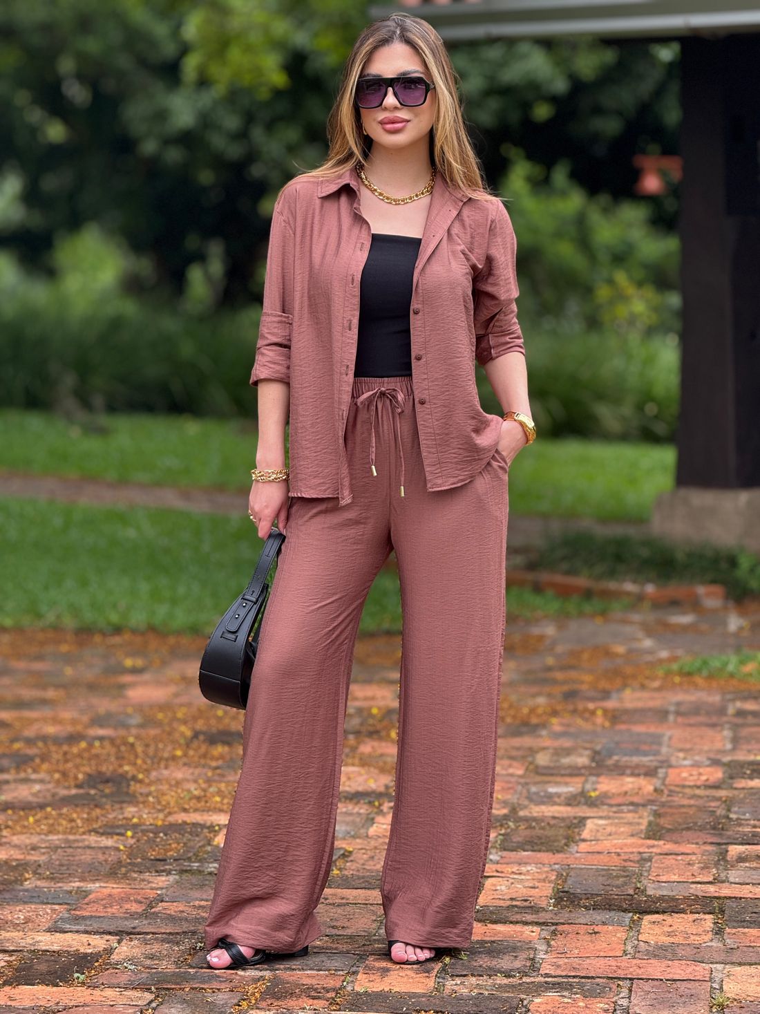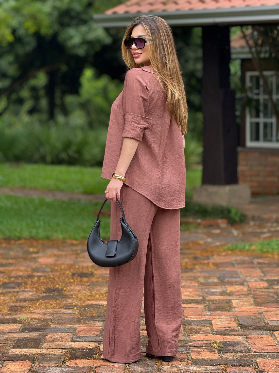 Camisa Erika em modelagem reta, com gola clássica, abotoamento frontal, mangas longas com punho e com comprimeito das costas maior do que a frente. Ombro levemente deslocado trazendo uma proposta sutil da estética over size, porém mantendo corte e caimento feminino da peça.