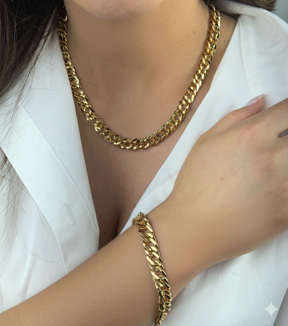 Colar em corrente dourada de elo médio, com design imponente e sofisticado. uma peça versátil que vai do look casual ao elegante, ideal para quem busca um acessório marcante que nunca passa despercebido.