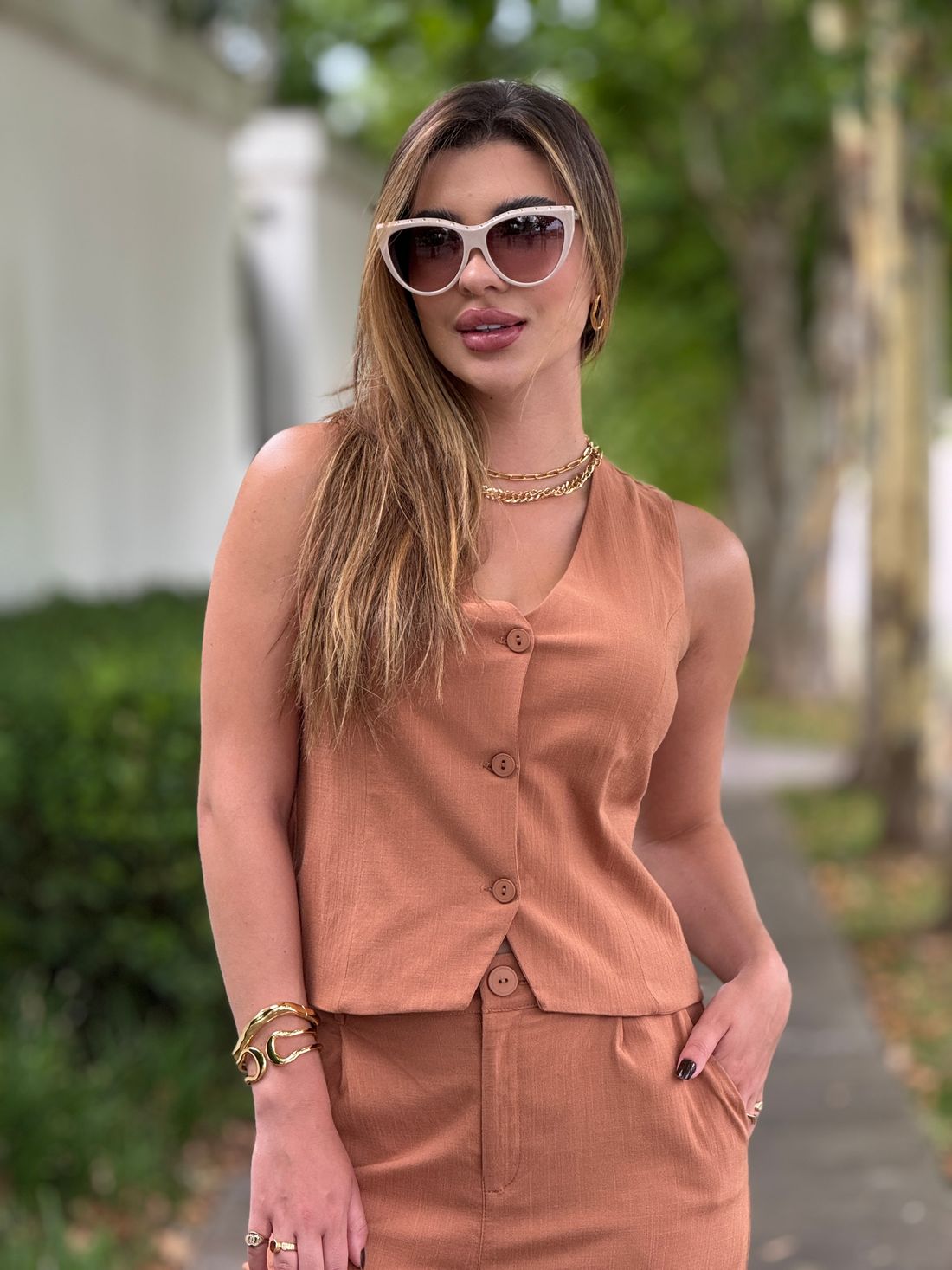 OBS: Para um melhor vestir da peça, o fechamento frontal em botões vem com 5 botões e não 3 como na foto.