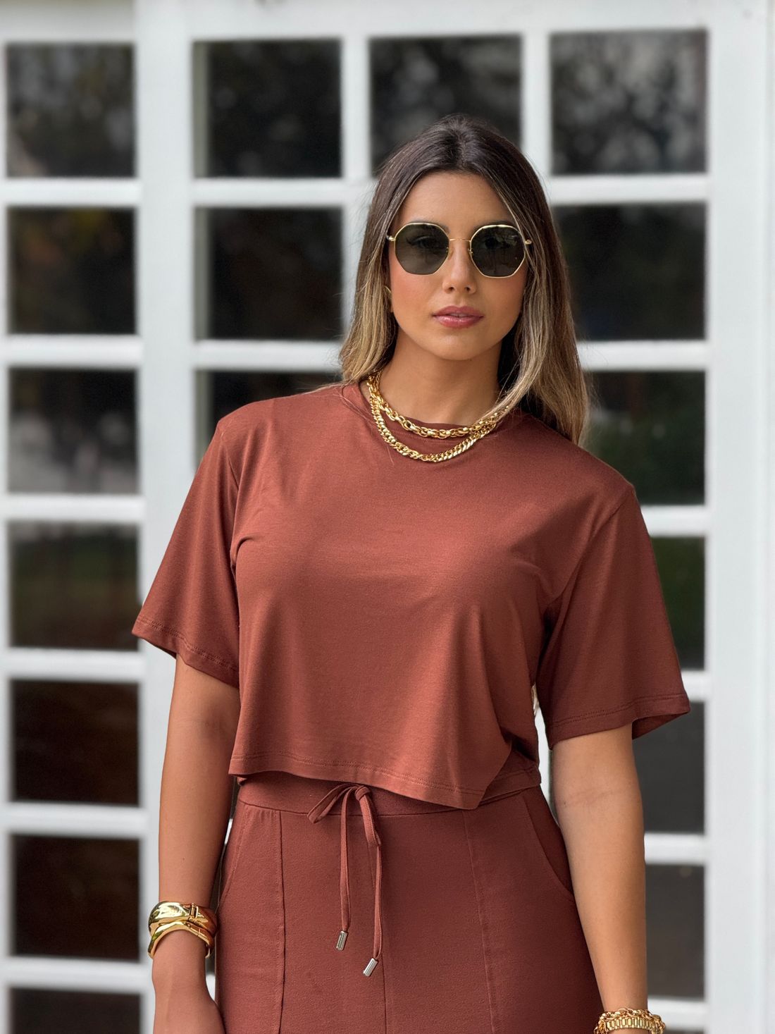 A t-shirt box é um modelo amplo com comprimento na cintura, em viscolycra, uma malha com alta elasticidade, perfeita para criar looks despojados e modernos.